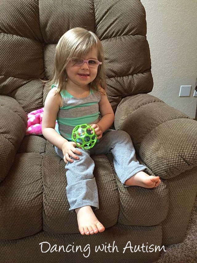 Lila is actually very intelligent. Along with being autistic, she also has sensory processing disorder – and has trouble processing everything, especially in an environment where she is over-stimulated. She will also most likely be diagnosed with apraxia, which is a brain/mouth connection issue – which is why she has trouble speaking and currently uses picture cards to communicate.