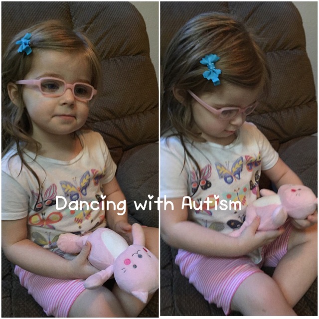 Lila also held a stuffed toy a few different times (for short periods of time) lately – more new things for her!